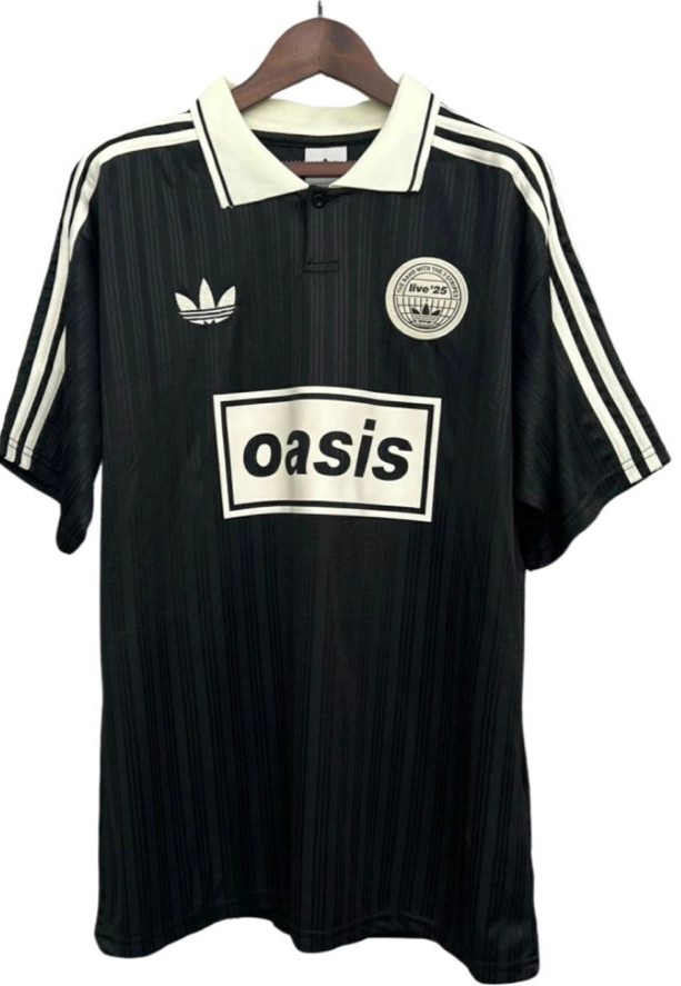 Esta camiseta es una edición especial creada por una marca y OASIS para la gira mundial que se dio en 2025. El estilo retro la hace única para la moda contemporánea que fusiona el deporte y el entretenimiento.